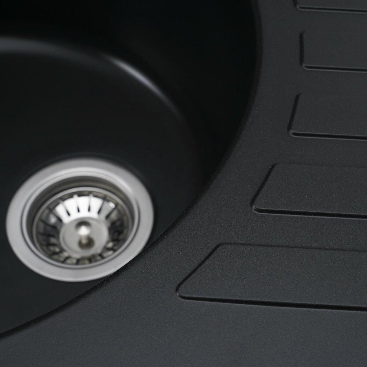 Мойка имеет матовую фактуру и приятный для глаза цвет - черный, что позволяет ей легко вписаться в интерьер кухни.