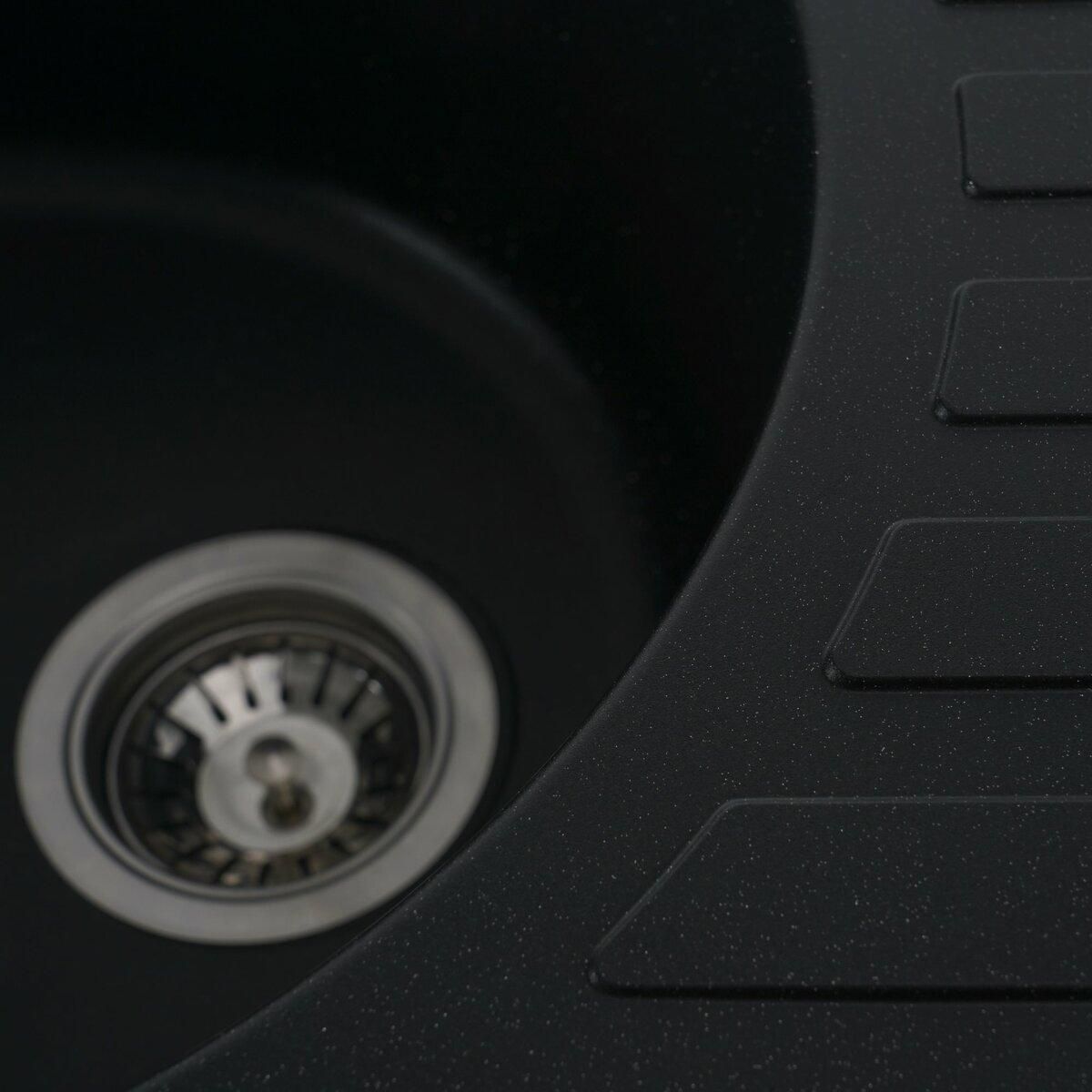 Мойка имеет матовую фактуру и приятный для глаза цвет - черный металлик, что позволяет ей легко вписаться в интерьер кухни.