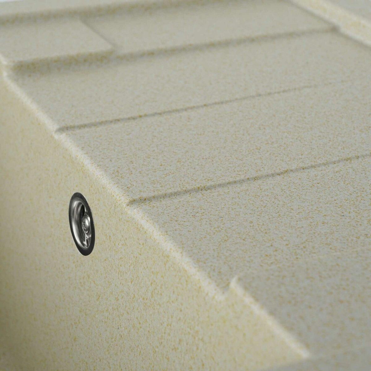 Мойка имеет матовую фактуру и приятный для глаза цвет - песок, что позволяет ей легко вписаться в интерьер кухни.