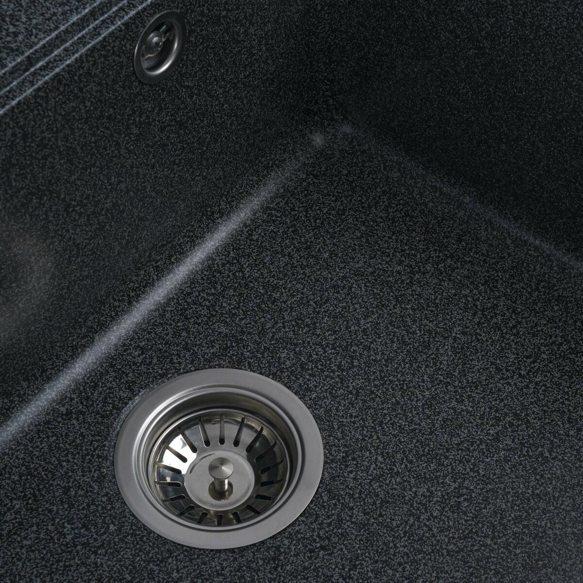 Мойка имеет матовую фактуру и приятный для глаза цвет - графит, что позволяет ей легко вписаться в интерьер кухни.