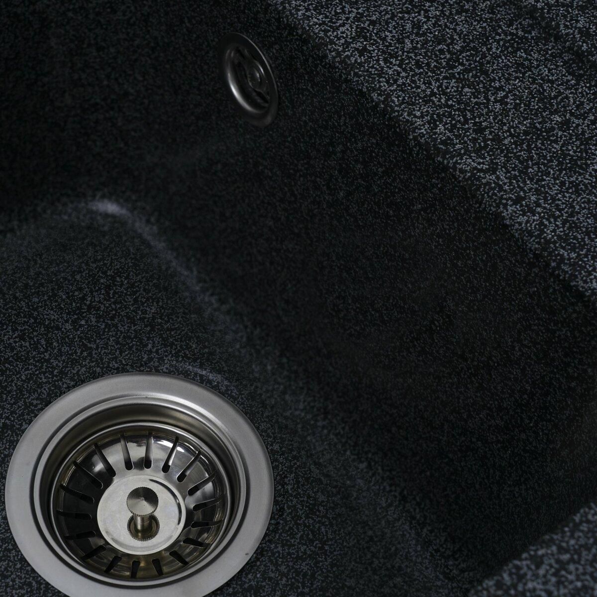 Мойка имеет матовую фактуру и приятный для глаза цвет - графит, что позволяет ей легко вписаться в интерьер кухни.