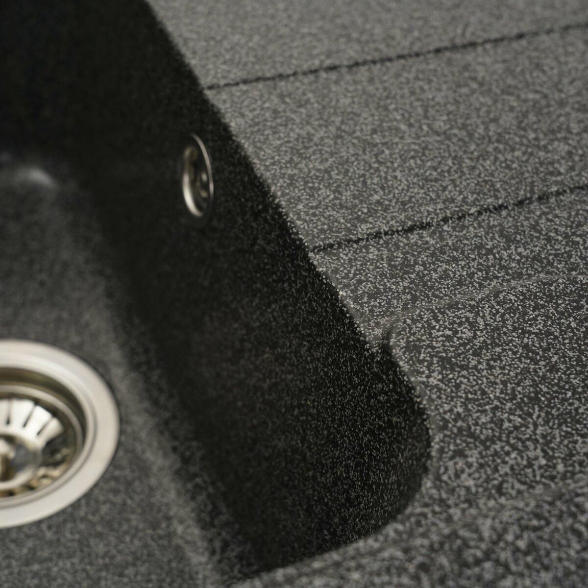 Мойка имеет матовую фактуру и приятный для глаза цвет - графит, что позволяет ей легко вписаться в интерьер кухни.
