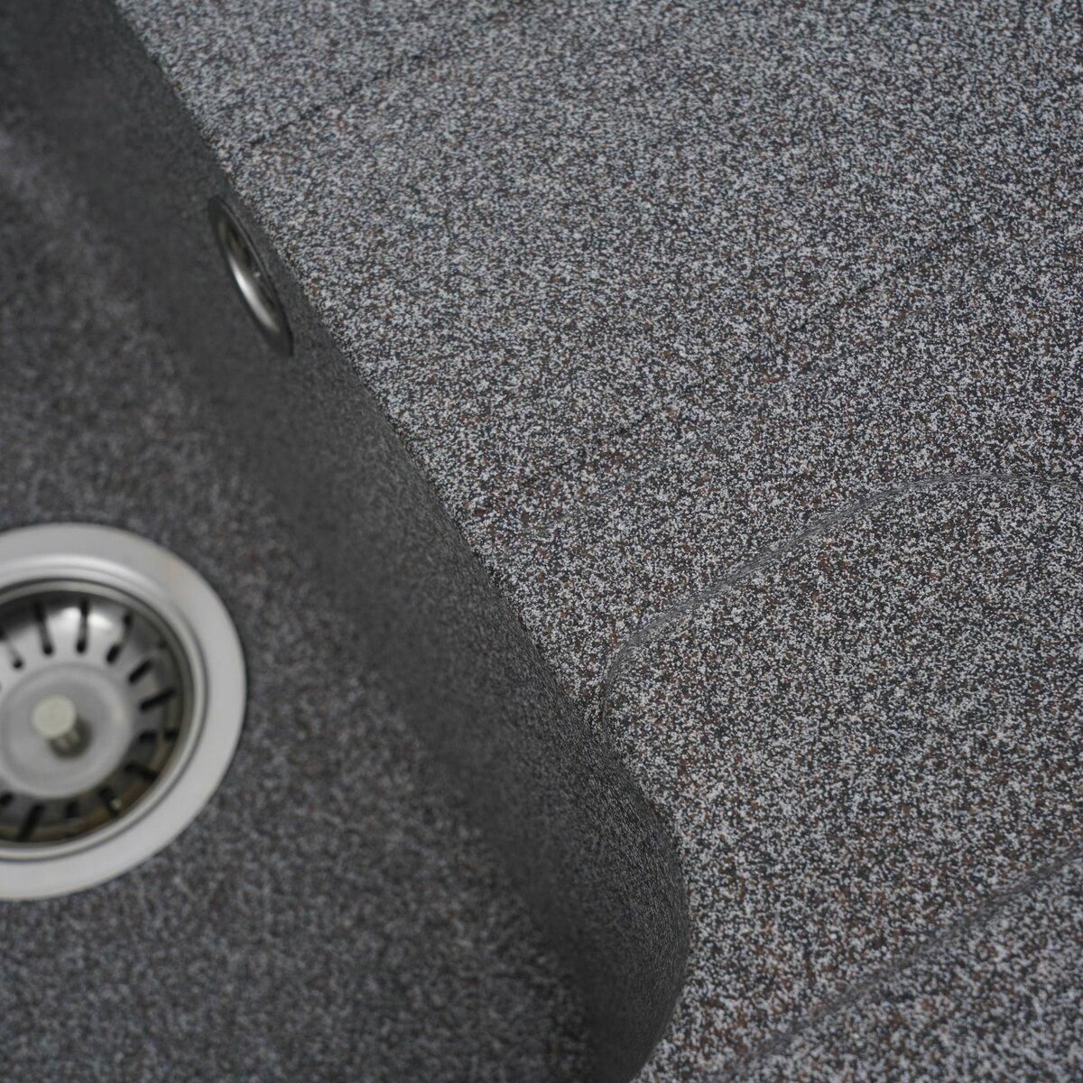 Мойка имеет матовую фактуру и приятный для глаза цвет - микс, что позволяет ей легко вписаться в интерьер кухни.