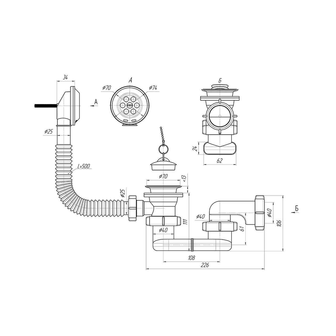 Сифон для ванной ANIplast Е050EU – идеальный выбор для вашей ванной комнаты. Комплектация включает сифон с резьбовым выпуском для надежного отвода воды, гибкую круглую переливную трубу, нержавеющую сетку для защиты от засорения. Сделан из прочного пластика, обеспечивает стойкость к коррозии. Его диаметры – выпуска 40 мм, патрубка в канализацию 40 мм и подключение 1 1/2” – обеспечивают удобную установку на большинство систем.