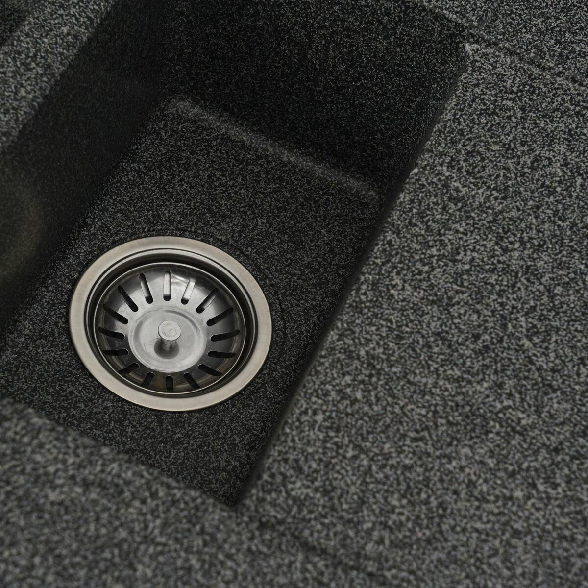 Мойка имеет матовую фактуру и приятный для глаза цвет - графит, что позволяет ей легко вписаться в интерьер кухни.