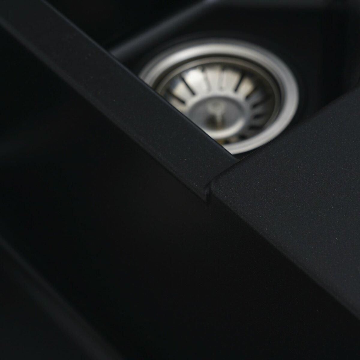 Мойка имеет матовую фактуру и приятный для глаза цвет - черный, что позволяет ей легко вписаться в интерьер кухни.