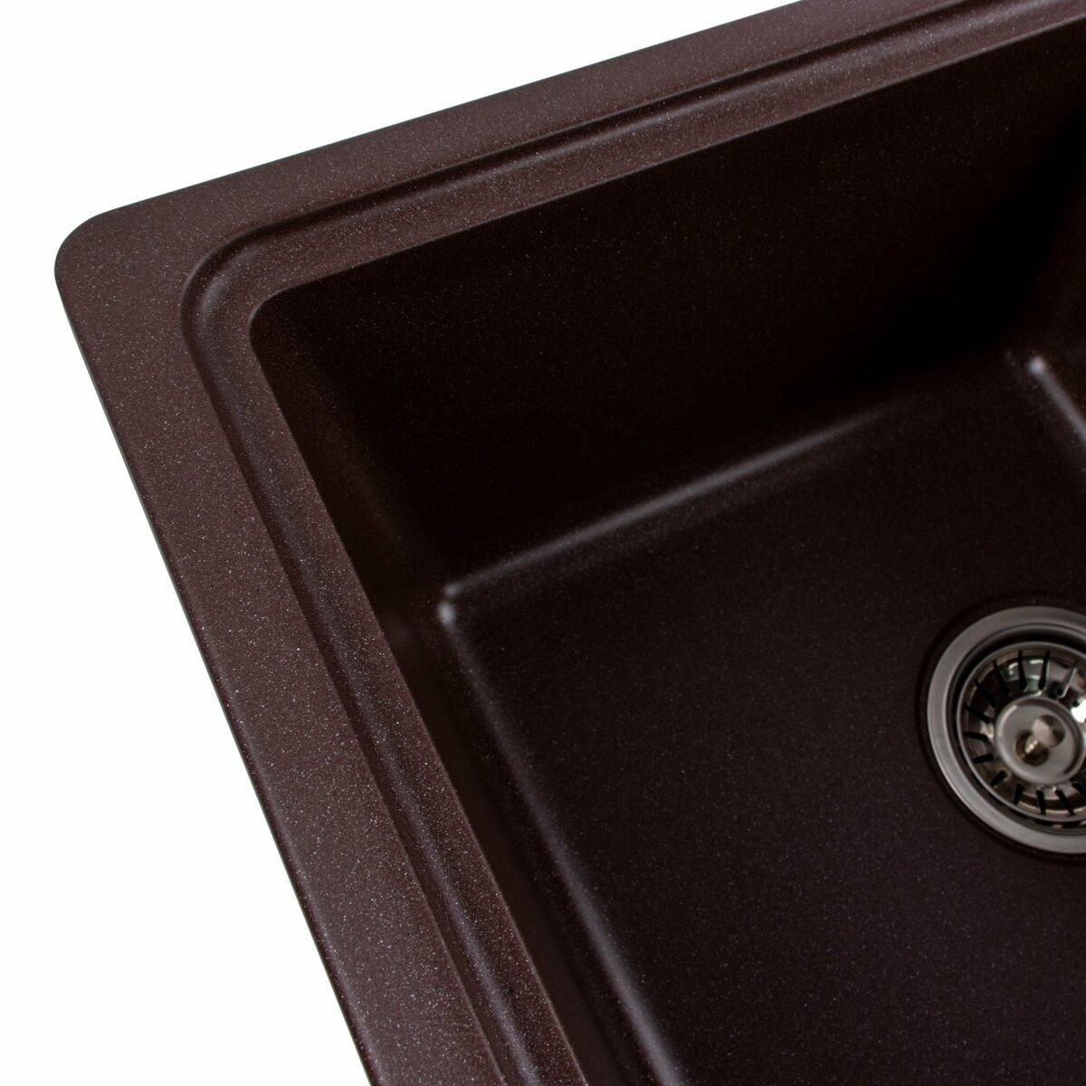 Мойка имеет матовую фактуру и приятный для глаза цвет - мокко, что позволяет ей легко вписаться в интерьер кухни.