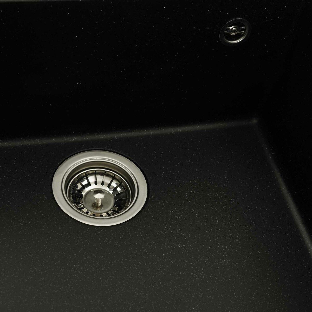 Мойка имеет матовую фактуру и приятный для глаза цвет - черный металлик, что позволяет ей легко вписаться в интерьер кухни.