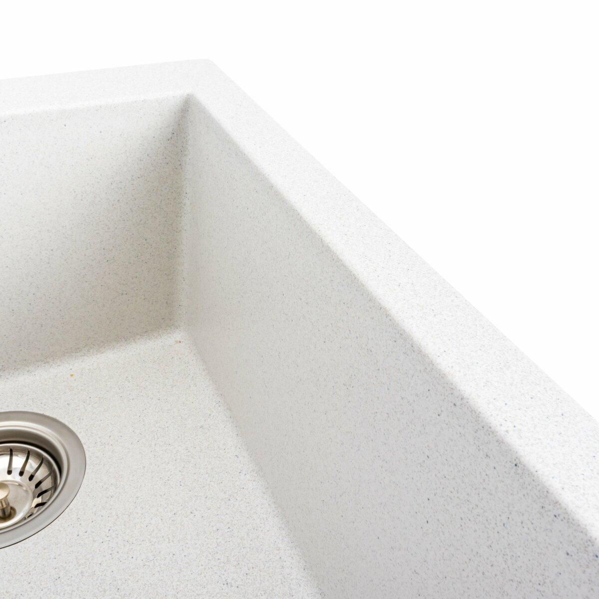 Мойка Platinum изготовлена из высококачественного кварца (80%) и твердой акриловой смолы (20%). Это сочетание делает ее не только неприхотливой в уходе, но и придает запас прочности. Благодаря матовой фактуре и приятному глазу черному цвету, мойка легко вписывается в любой интерьер кухни, придавая ему современный и стильный вид.