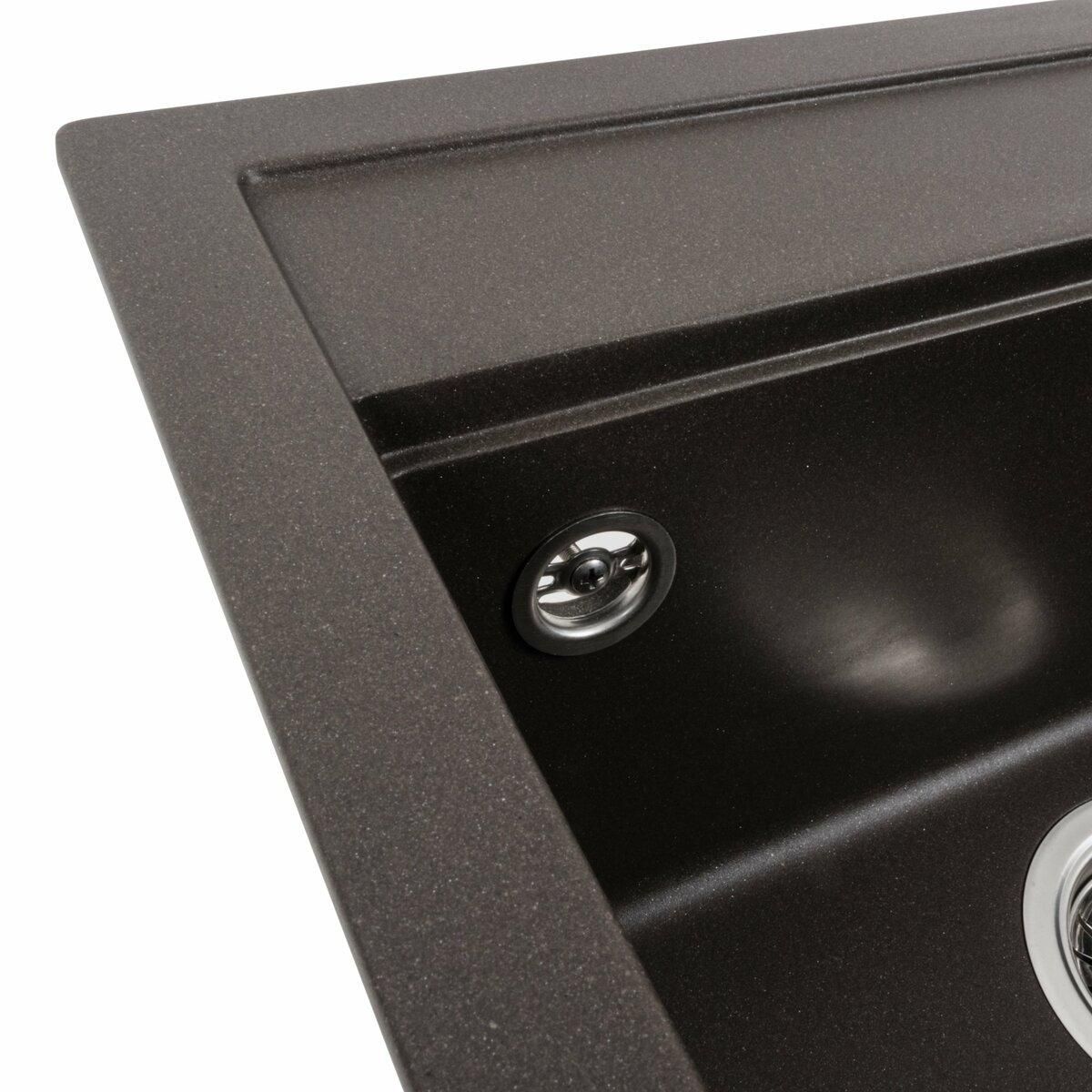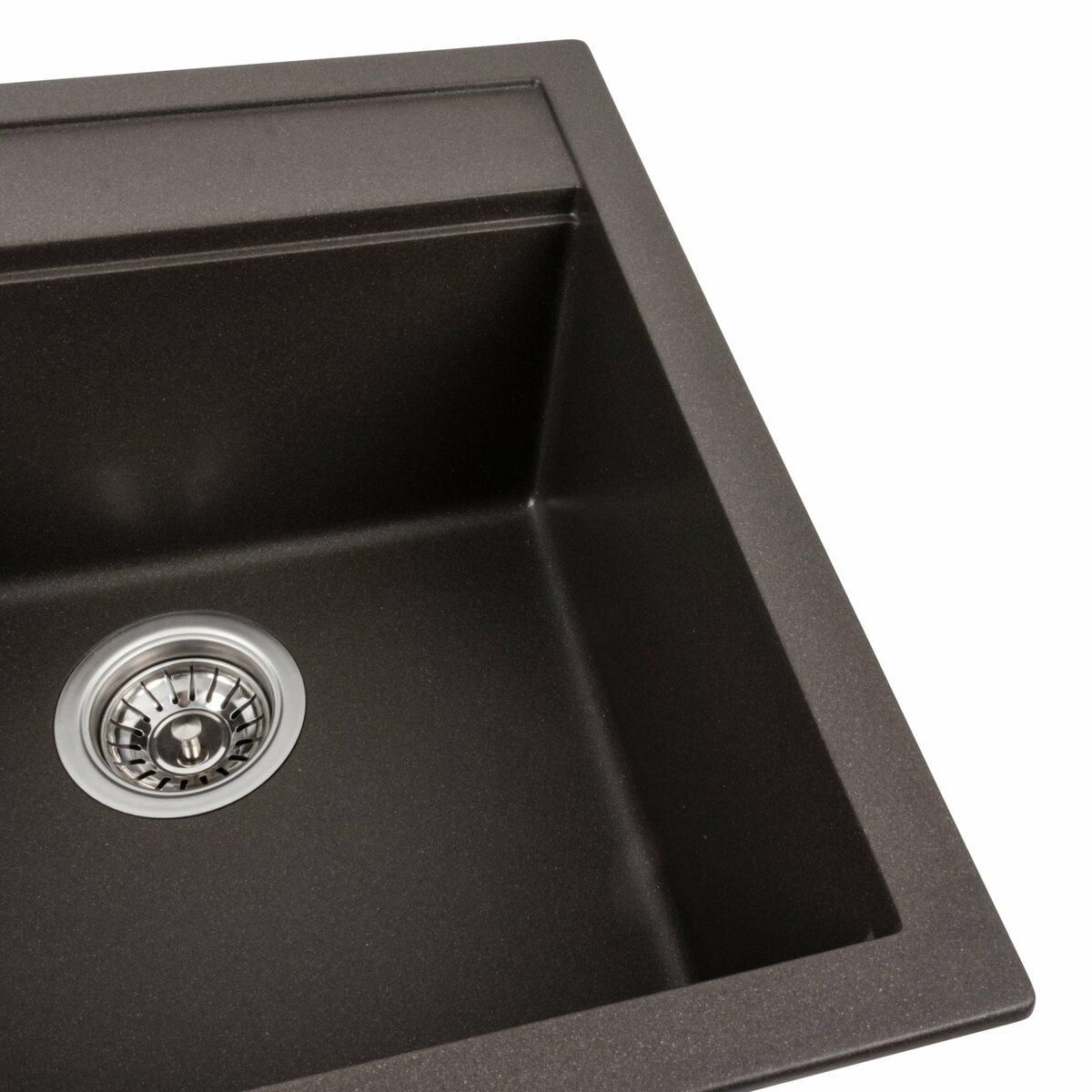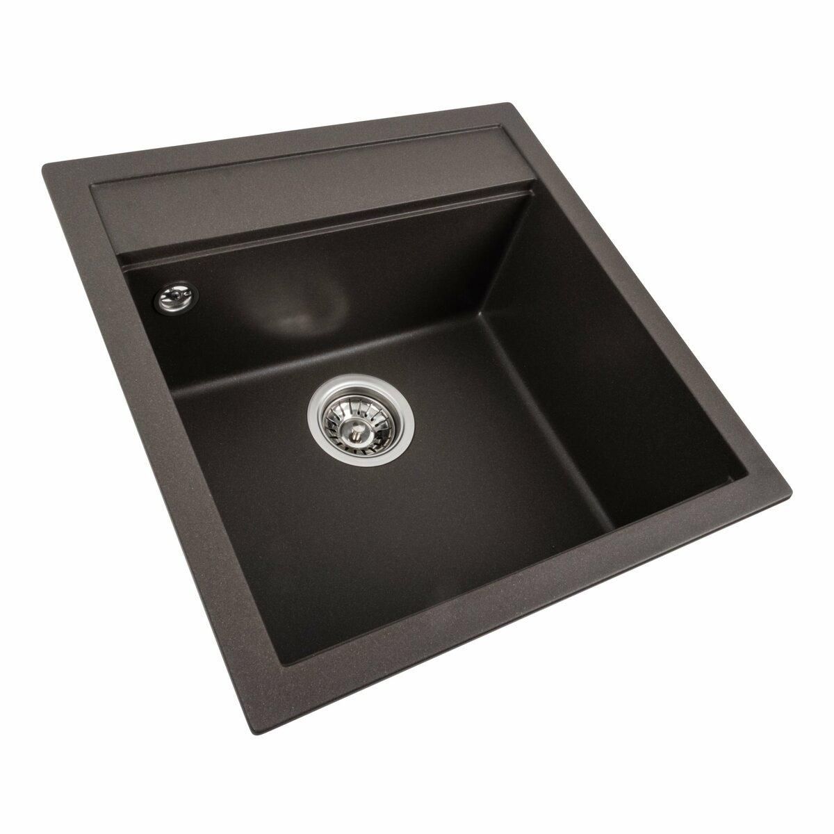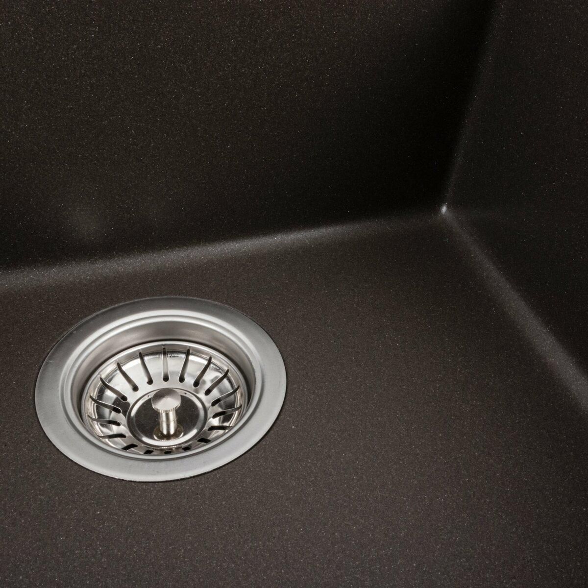 Мойка имеет матовую фактуру и приятный для глаза цвет - темная скала, что позволяет ей легко вписаться в интерьер кухни.