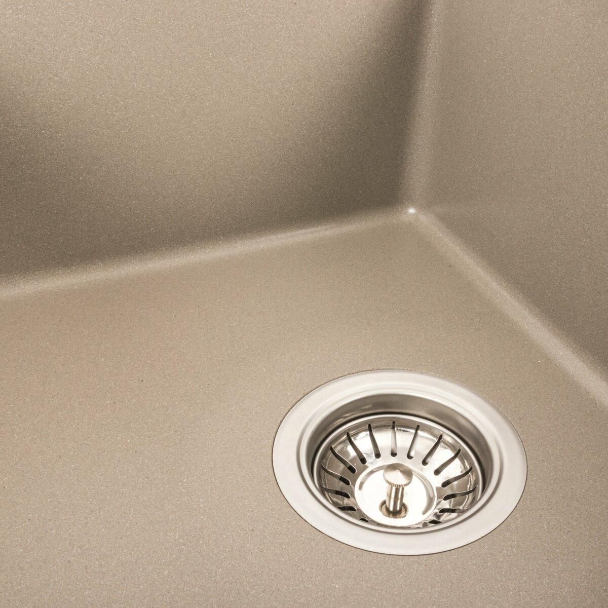 Мойка на 80% состоит из кварца и на 20% из чрезвычайно твердой акриловой смолы, благодаря чему неприхотлива в уходе, а также имеет большой запас прочности.