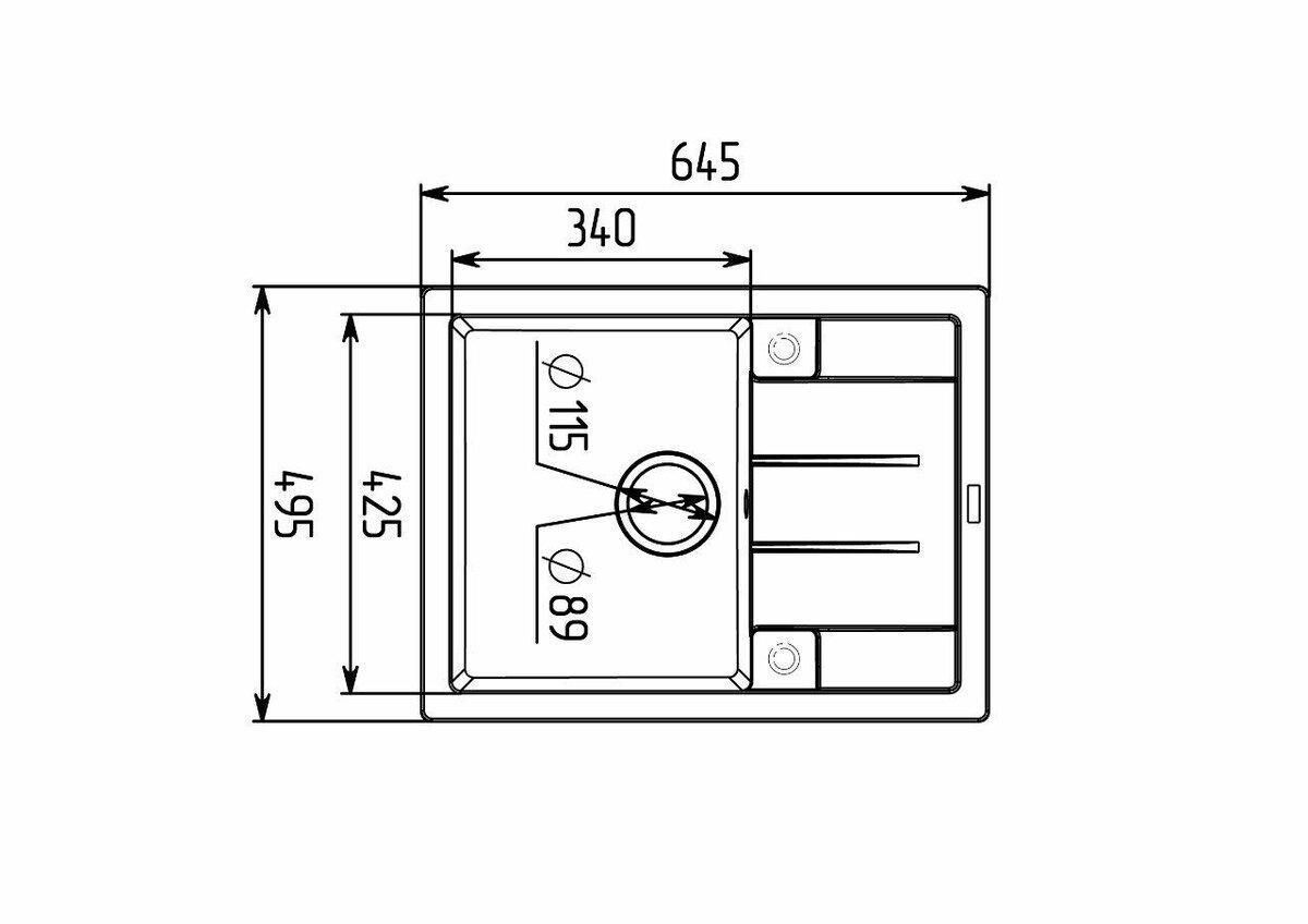 Размеры мойки – 645х495х200 мм, вес – 11 кг, сифон - евросифон с широкой горловиной, 110 мм.