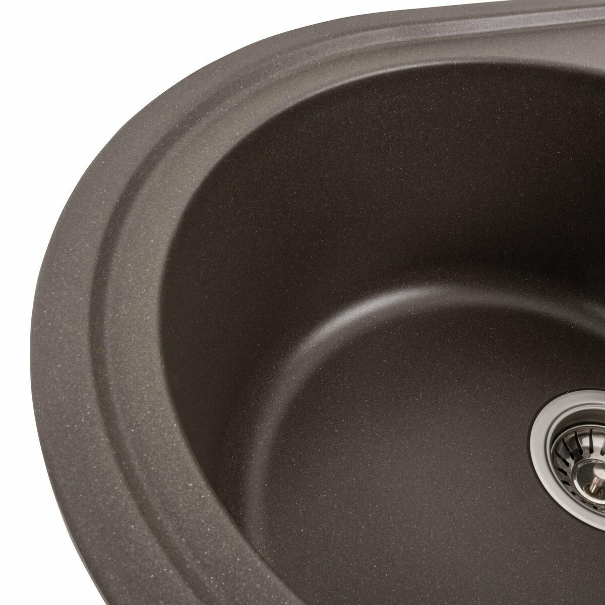 Мойка имеет матовую фактуру и приятный для глаза цвет - темная скала, что позволяет ей легко вписаться в интерьер кухни.