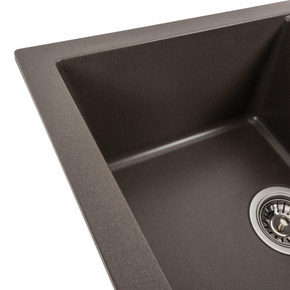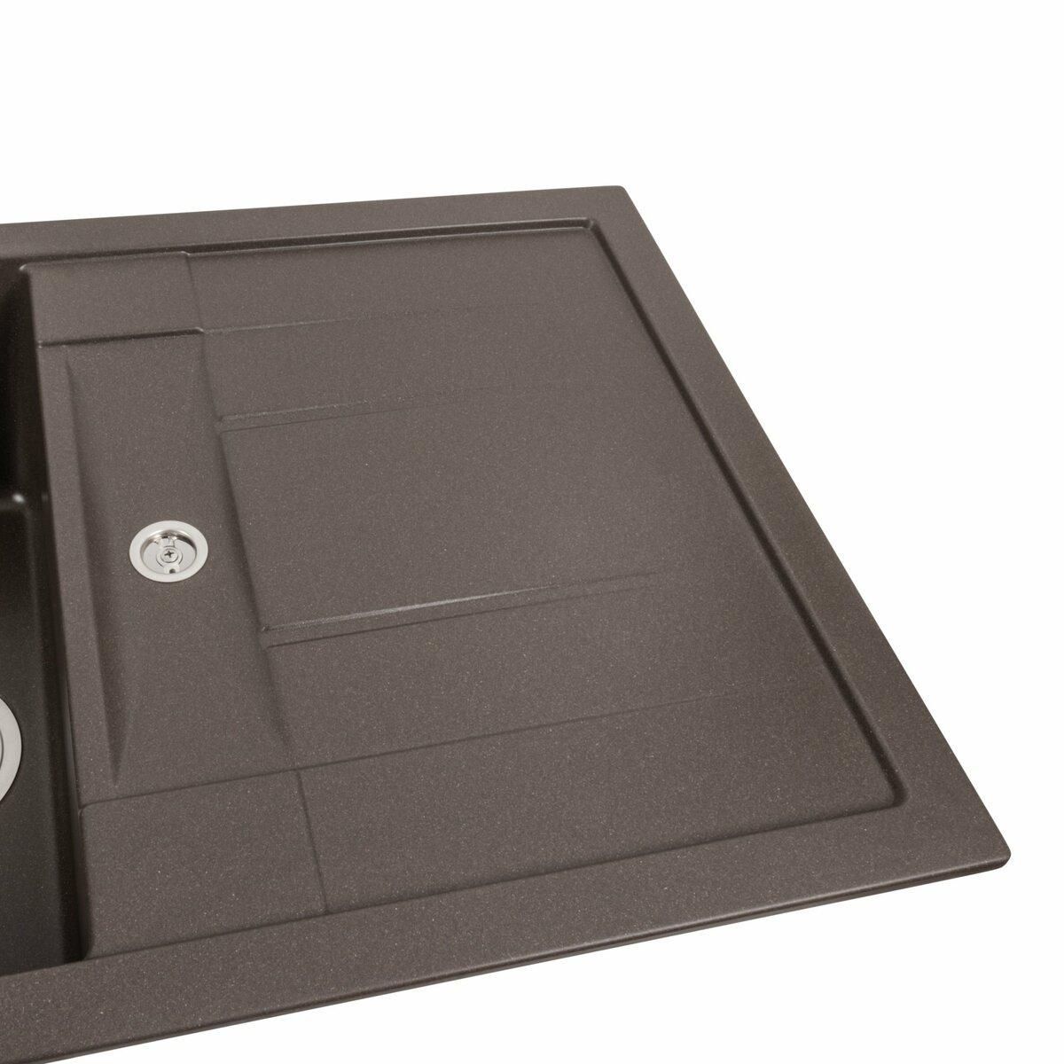 Мойка имеет матовую фактуру и приятный для глаза цвет - темная скала, что позволяет ей легко вписаться в интерьер кухни.