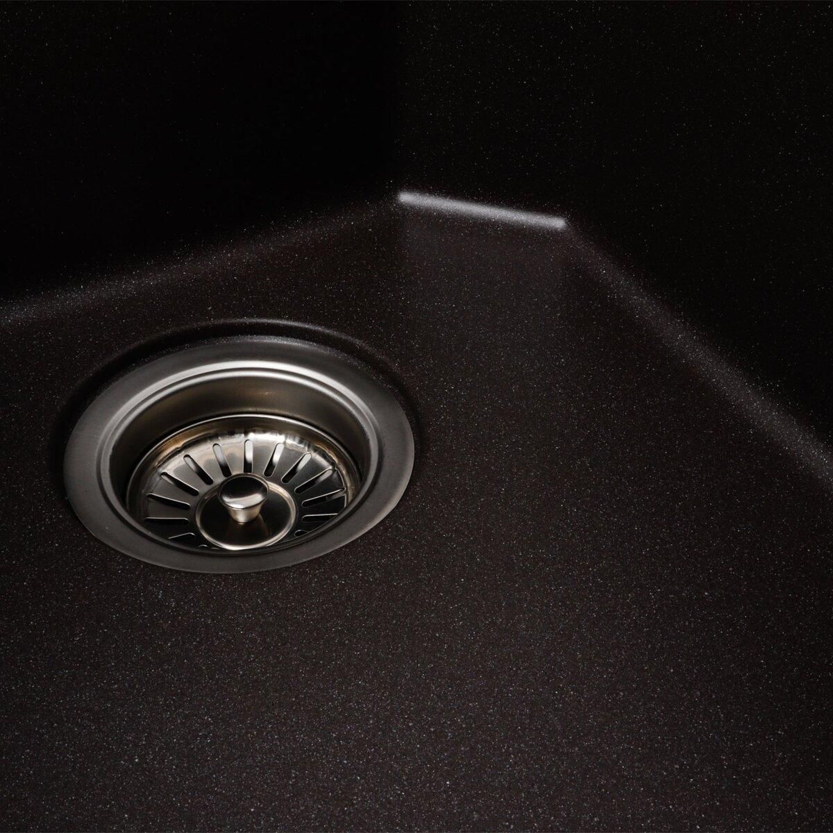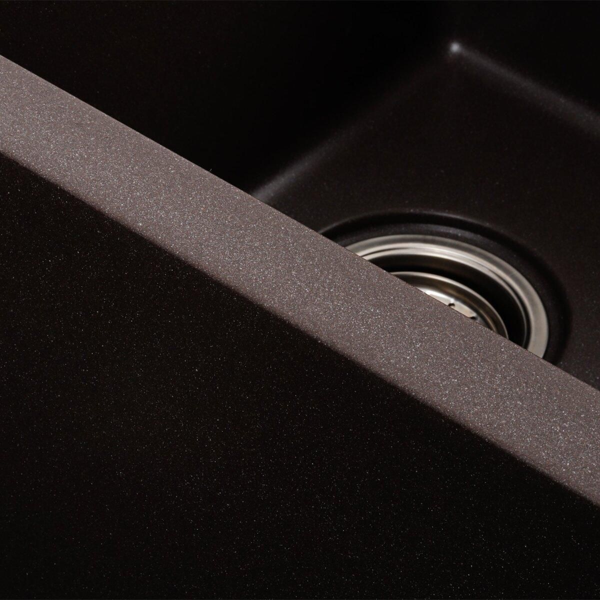 Мойка на 80% состоит из кварца и на 20% из очень жесткой акриловой смолы, благодаря чему неприхотлива в уходе, а также имеет большой запас прочности.
