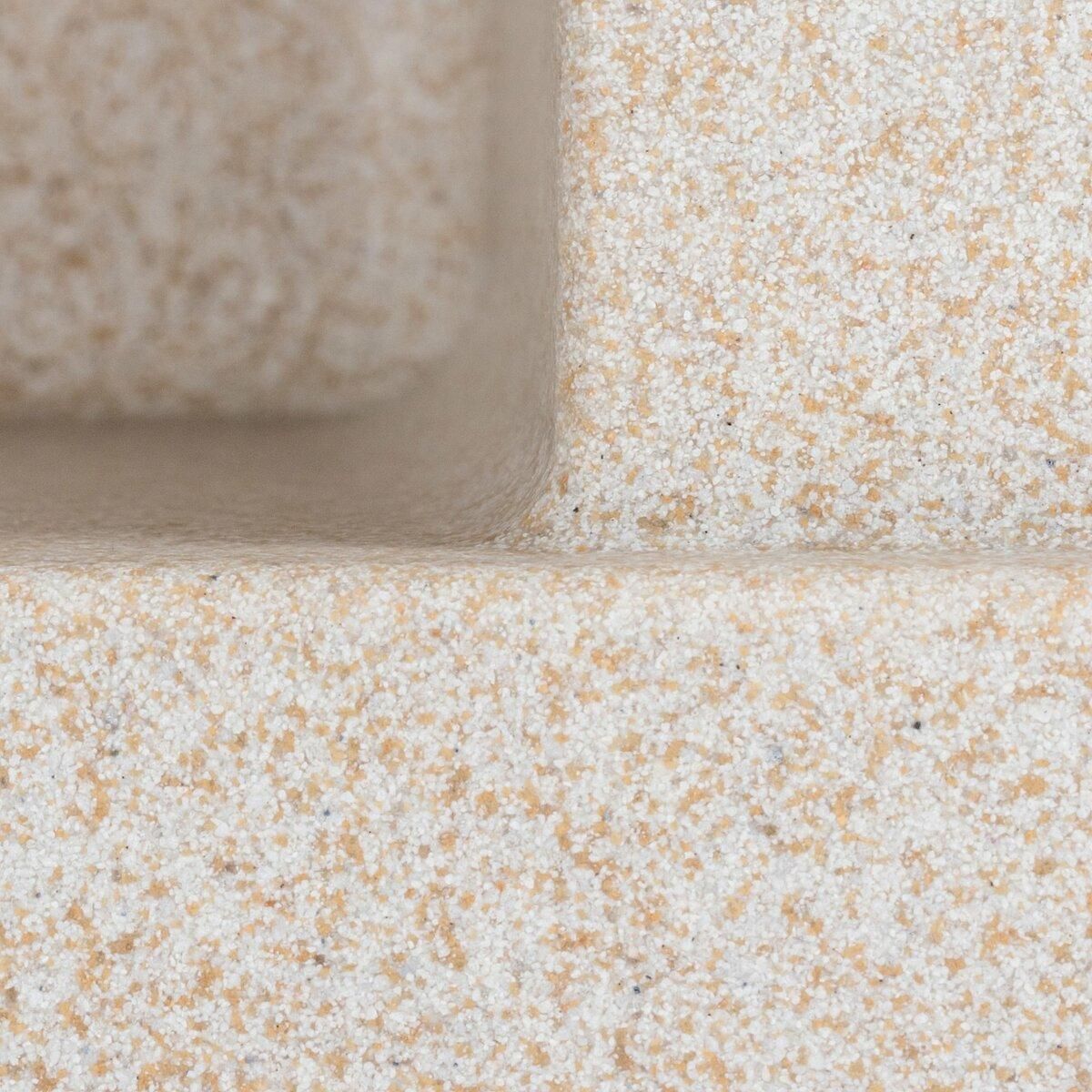 Эта мойка изготовлена с помощью технологии Solid Surface, гарантирующей ее качество и долговечность. Этот материал производится методом литья, и в нем сочетаются 80% кварцевого песка и 20% смолы. Зрительно он напоминает природный камень, а его поверхность является теплой и шелковистой на ощупь.