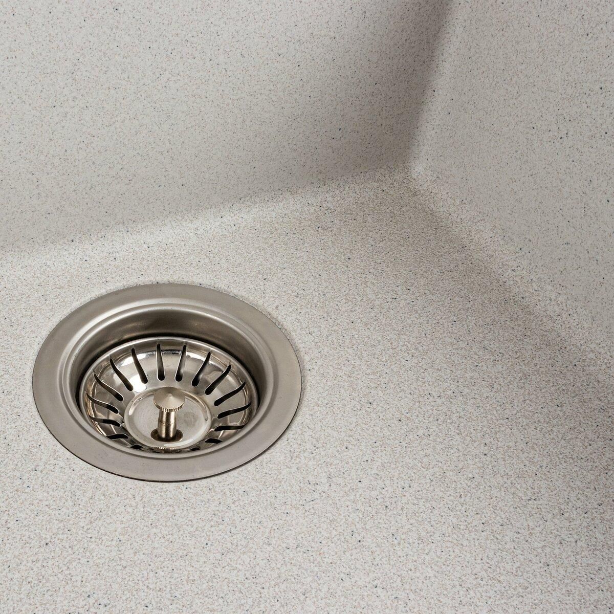 Эта мойка изготовлена с помощью технологии Solid Surface, гарантирующей ее качество и долговечность. Этот материал производится методом литья, и в нем сочетаются 80% кварцевого песка и 20% смолы. Зрительно он напоминает природный камень, а его поверхность является теплой и шелковистой на ощупь.