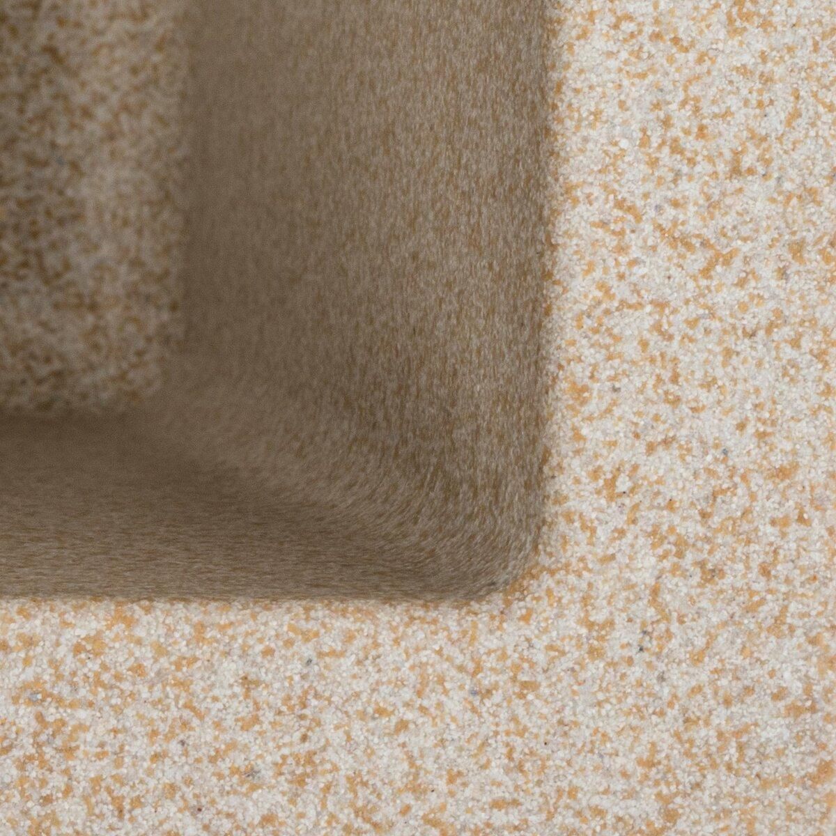 Эта мойка изготовлена с помощью технологии Solid Surface, гарантирующей ее качество и долговечность. Этот материал производится методом литья, и в нем сочетаются 80% кварцевого песка и 20% смолы. Зрительно он напоминает природный камень, а его поверхность является теплой и шелковистой на ощупь.