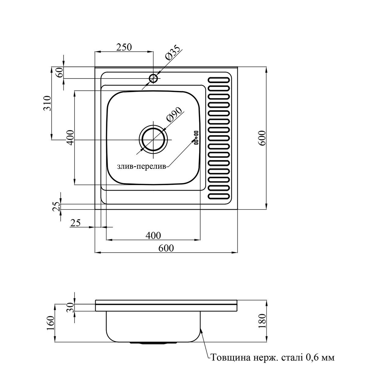 Кухонная мойка накладная Kroner KRP Satin - 6060L (0.6 мм)