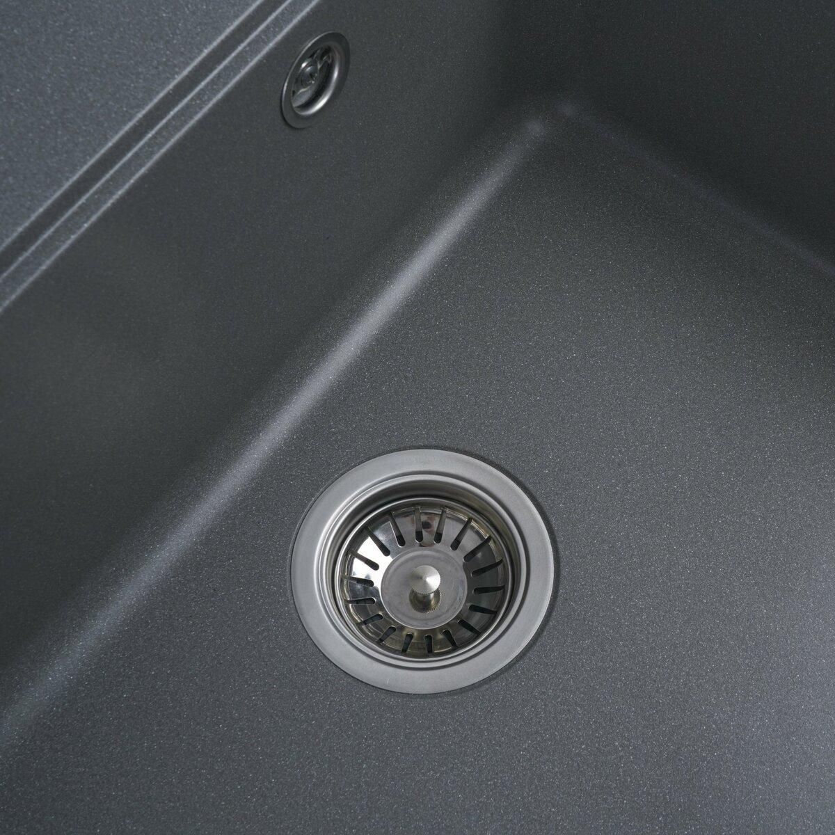 Мойка имеет матовую фактуру и приятный для глаза цвет - серый муссон, что позволяет ей легко вписаться в интерьер кухни.