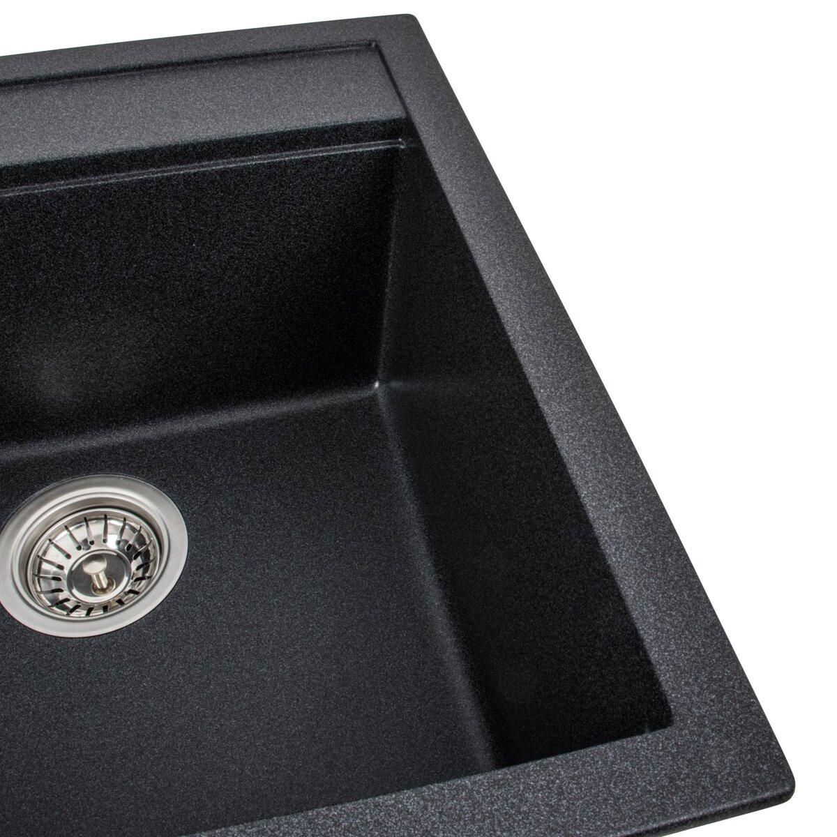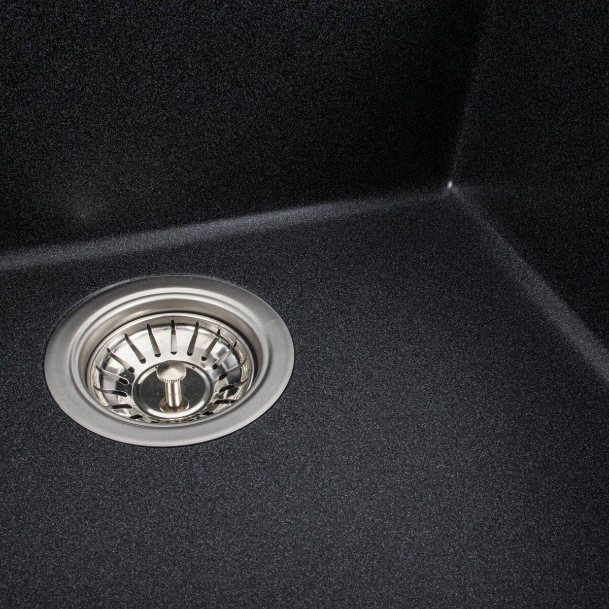 Мойка имеет матовую фактуру и приятный для глаза цвет - карбон, что позволяет ей легко вписаться в интерьер кухни.