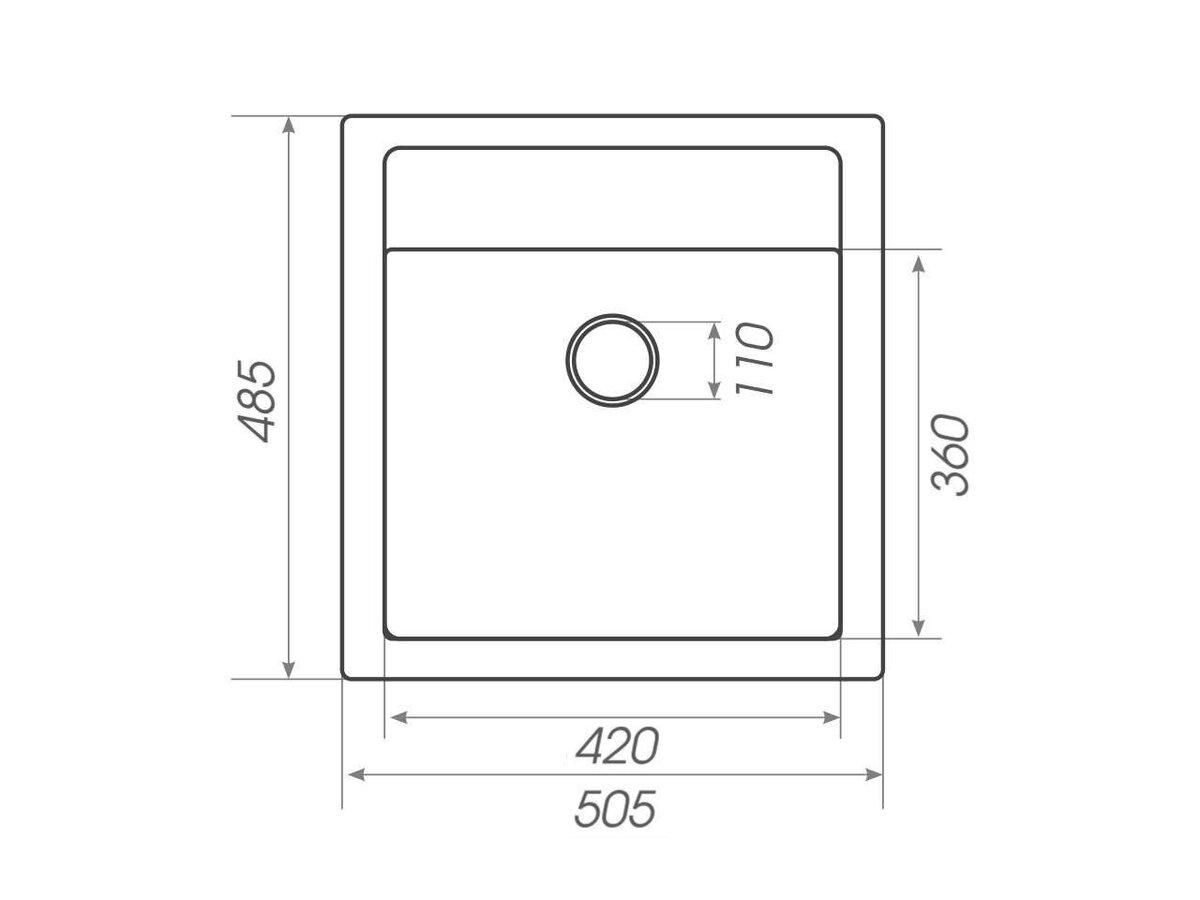 Размеры мойки – 505х485х195 мм, вага – 11,9 кг, сифон - евросифон с широкой горловиной, 110 мм.