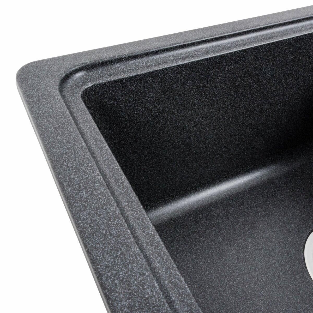 Мойка имеет матовую фактуру и приятный для глаза цвет - карбон, что позволяет ей легко вписаться в интерьер кухни.