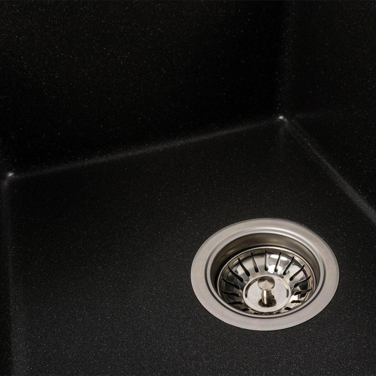 Мойка на 80% состоит из кварца и на 20% из очень жесткой акриловой смолы, благодаря чему неприхотлива в уходе, а также имеет большой запас прочности.