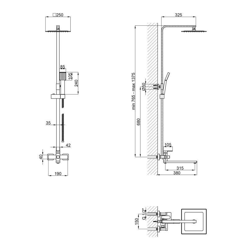 Высота душевой стойки, мм765-1375