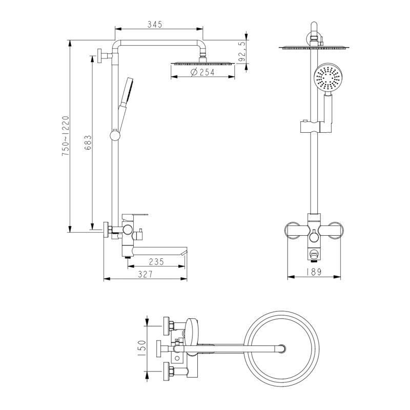 Высота душевой стойки, мм750-1220