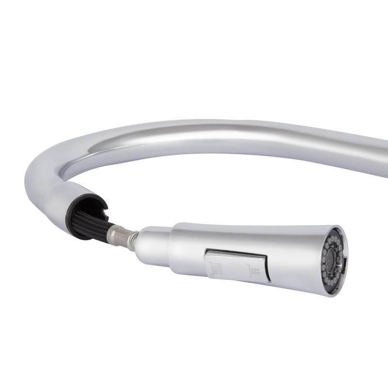Смеситель для кухни с выдвижным изливом Qtap Vlasta New QTVLA344CRM45646 изготовлен из высококачественной латуни с хромированным глянцевым покрытием, что обеспечивает долговечную бесперебойную работу изделия. Благодаря выдвижной форме излива можно легко очистить труднодоступные места на посуде. Управление температурой и напором воды осуществляется с помощью удобного рычага.