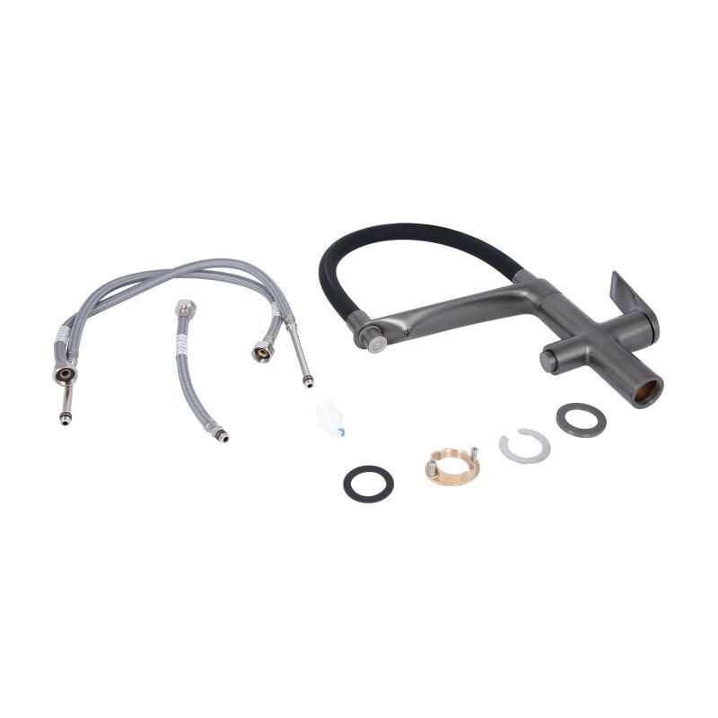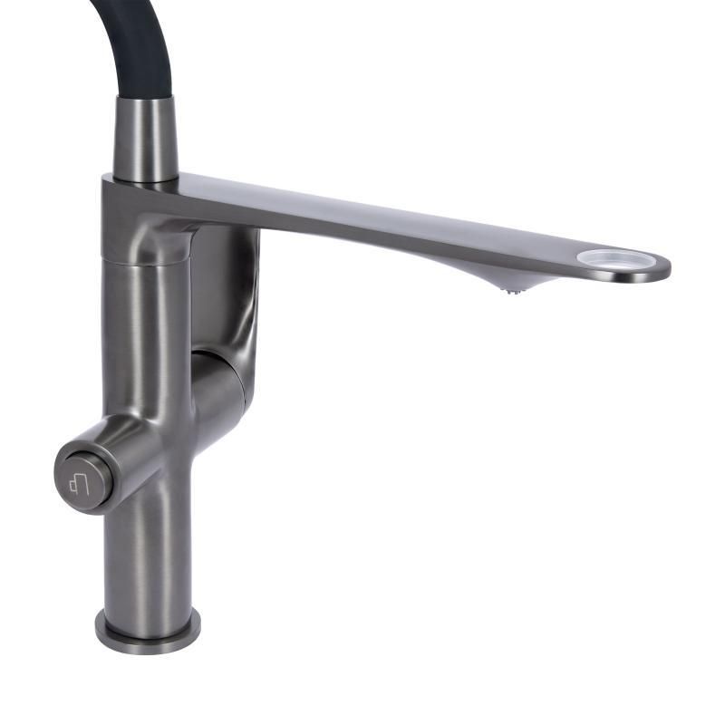 Смеситель для кухни с гибким изливом и подключением для питьевой воды Qtap Vlasta New QTVLA364GMB45649 в исполнении Gunmetal Black PVD — это функциональное и стильное решение для современной кухни. Гибкий излив и возможность подключения для питьевой воды обеспечивают максимальное удобство в использовании. Покрытие Gunmetal Black PVD защищает изделие от коррозии и механических повреждений.