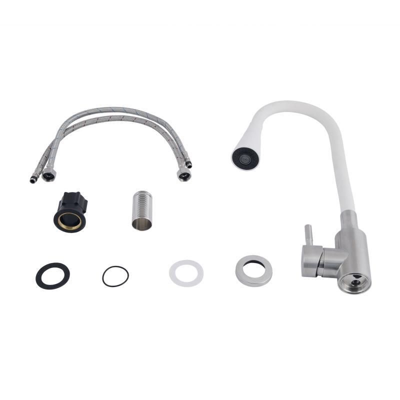 Lidz Aria 015F31 Смеситель для кухни с гибким изливом (k35) White / Nickel – это стильное и функциональное решение для вашей кухни. Гибкий излив позволяет удобно управлять направлением потока воды, а белое покрытие в сочетании с никелем придает смесителю современный вид. Высокое качество материалов обеспечивает долговечность и надежность в эксплуатации.