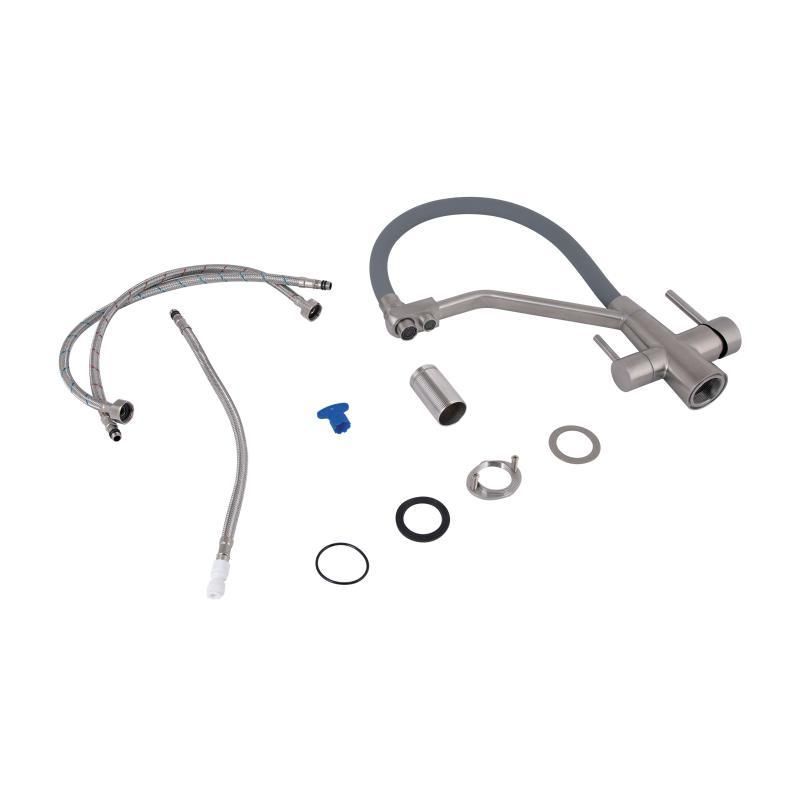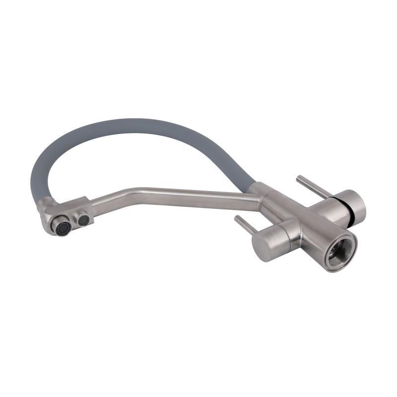 Lidz Aria 020F3 Смеситель для кухни с гибким изливом с подключением для питьевой воды (k35) Grey / Nickel – серый смеситель с возможностью подключения питьевой воды. Гибкий излив облегчает управление направлением потока воды, а качественные материалы обеспечивают долговечность и надежность в эксплуатации.