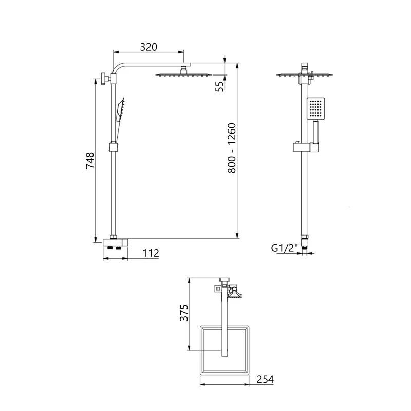 Душевая стойка универсальная Lidz Kubis 1120 на два потребителя LDKUB1120NKS46111 Nickel