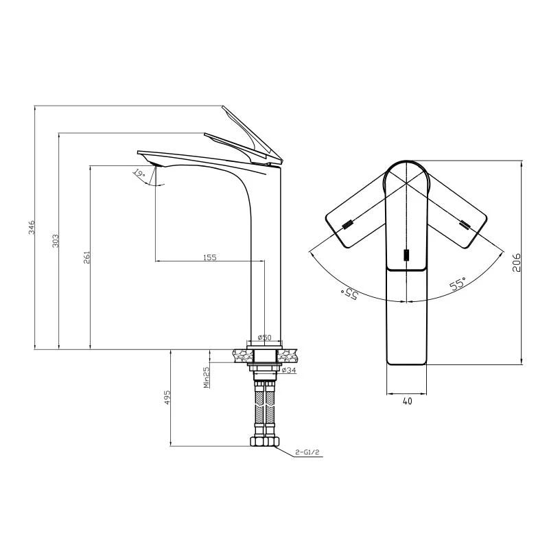 Высота излива, мм255