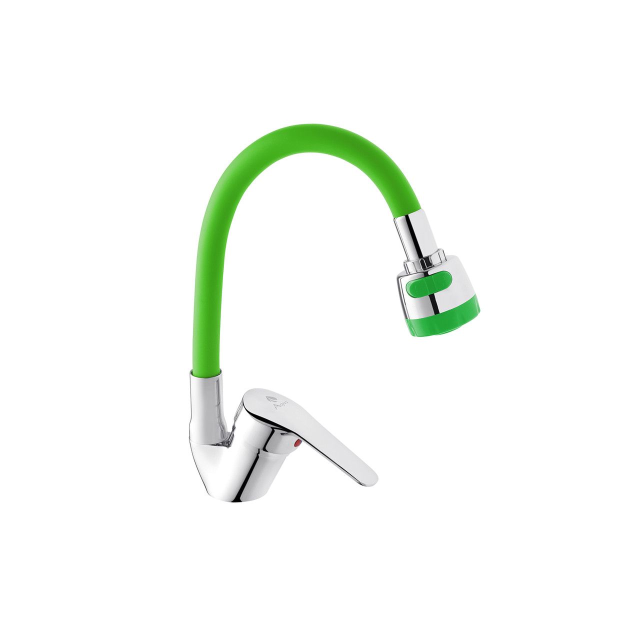 Смеситель для кухни Agua Sevilla - C039VRD — это идеальное решение для современных кухонь. Корпус выполнен из качественного силумина, что обеспечивает долговечность и надежность изделия. Излив с силиконовым покрытием яркого зеленого цвета не только придает смесителю оригинальный внешний вид, но и делает его удобным для использования. Глянцевая поверхность корпуса добавляет смесителю шарма и легко очищается от загрязнений.