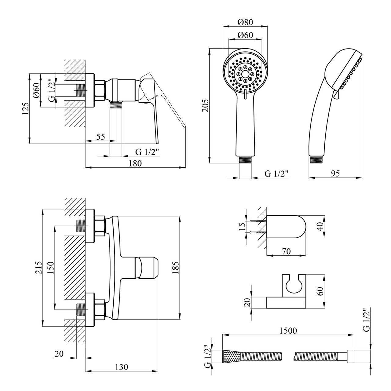 КомплектацияСмеситель, лейка для ручного душа, душевой шланг, кронштейн для ручного душа, крепежи, инструкция.