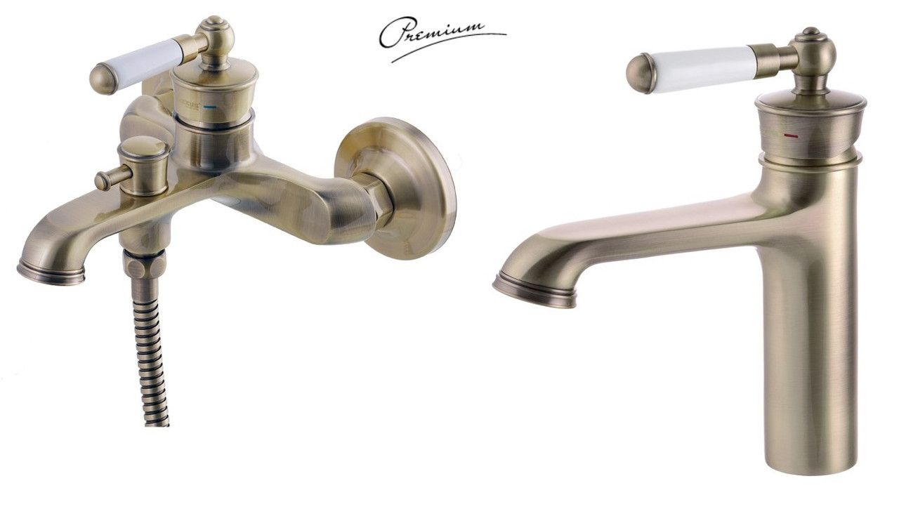 Смеситель для ванну и смеситель для умывальник выполнены из высококачественной латуни и покрыты напылением в ретро-стиле.