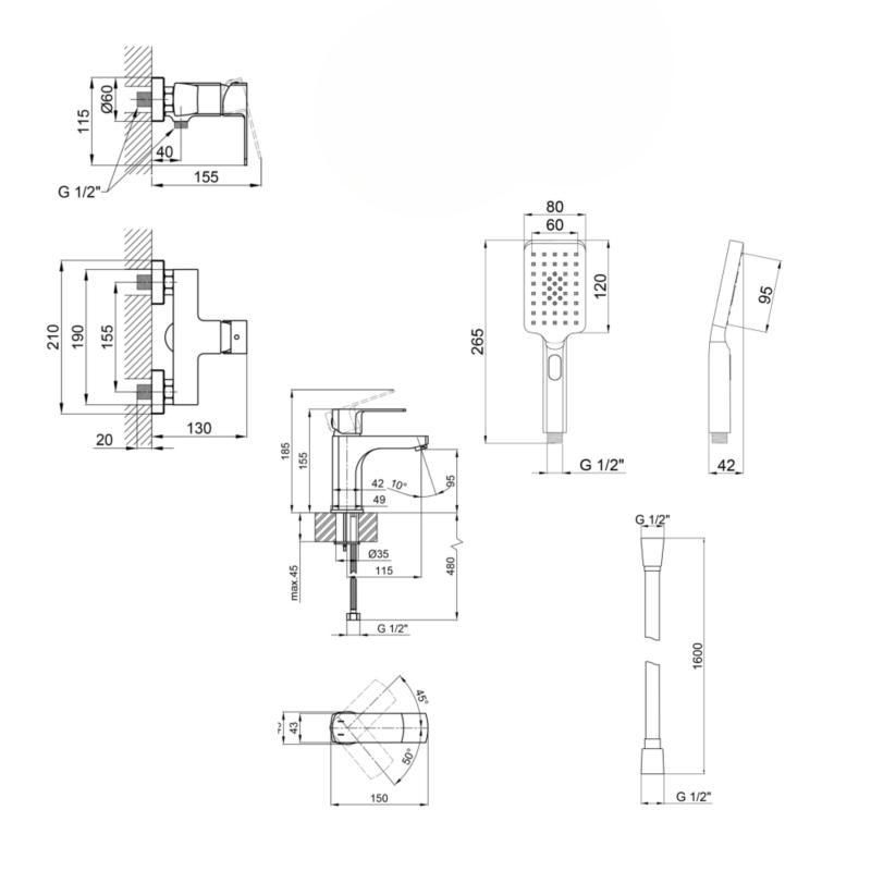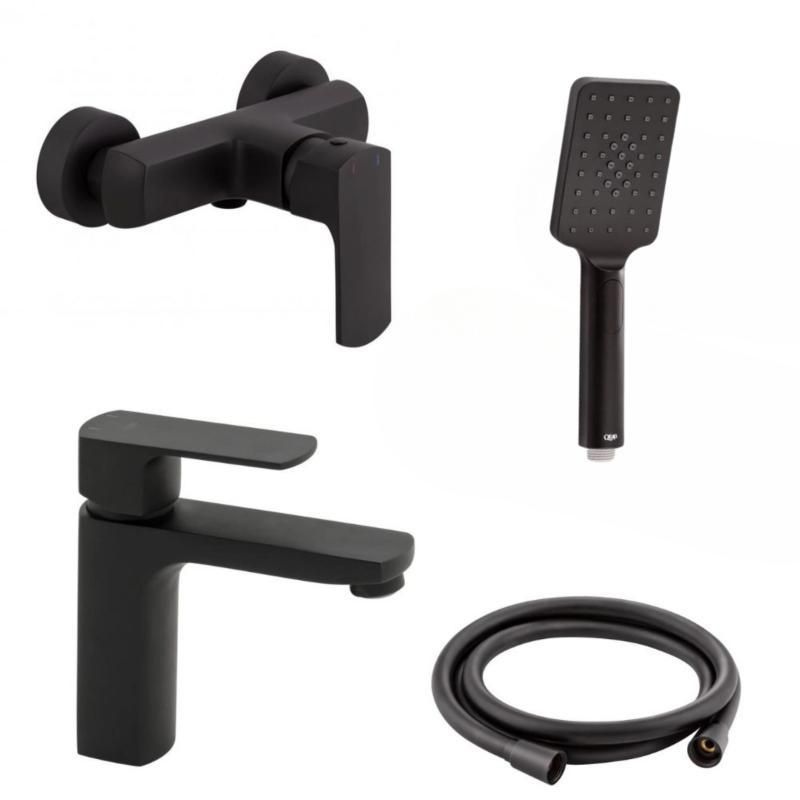 Набор смесителей Qtap 5 в 1 Lipno для душа с душевым гарнитуром (QTLIPNO1023101CB + QTLIPNO4023101CB) представлен в черном цвете. Смеситель для душа, смеситель для раковины, лейка, шланг и держатель - сочетаются по стилю и закрывают потребность в обустройстве ванной комнаты без забот и затрат времени на подбор сантехники.