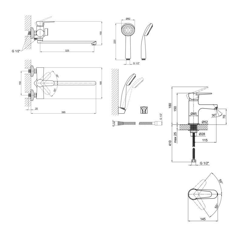 Наборы смесителей для ванны Lidz