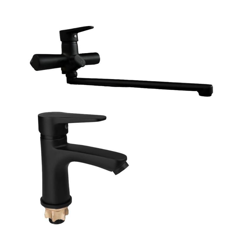 Набор смесителей для ванны Lidz Nikole (005+001F) представлен в черном цвете, в набор входит смеситель для раковины и смеситель для ванны с поворотным изливом (с душевым гарнитуром), изделия идеально сочетаются по стилю и закрывают потребность в обустройстве ванной комнаты без забот и затрат времени на подбор сантехники.