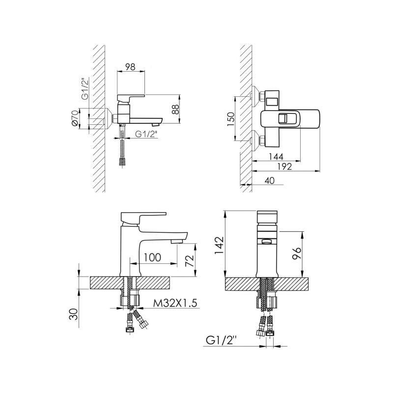 Вес нетто, кг2,005 – для ванны; 1,19 – для раковины