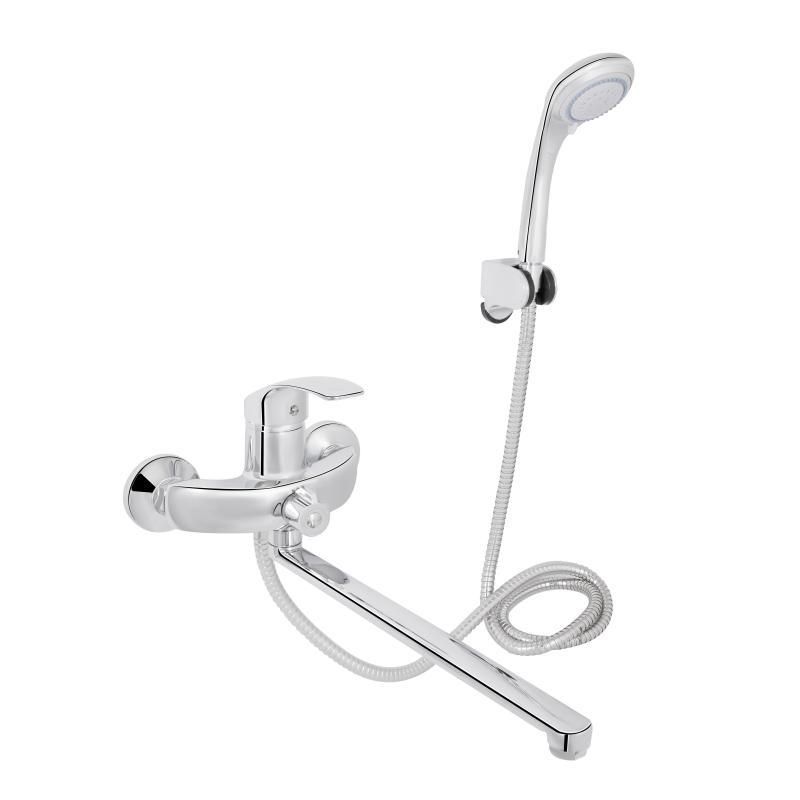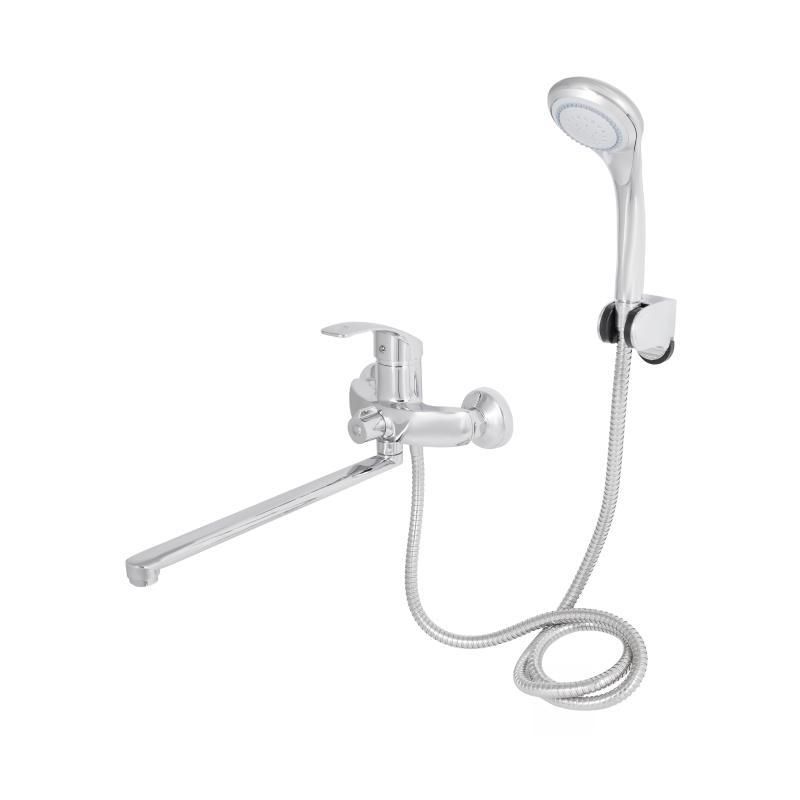 Смеситель для ванны Lidz (CRM) Mars 81 005-1 New изготовлен из латуни, имеет длинный излив и удобную рукоятку. Для включения подачи воды достаточно поднять и повернуть ее в необходимое положение. Смеситель и держатель лейки монтируются на стену с помощью крепежных элементов, которые входят в комплект. Круглые хромированные розетки скроют погрешности установки на отделке ванной комнаты. Переключение на ручной душ выполняется поворотным дивертором.
