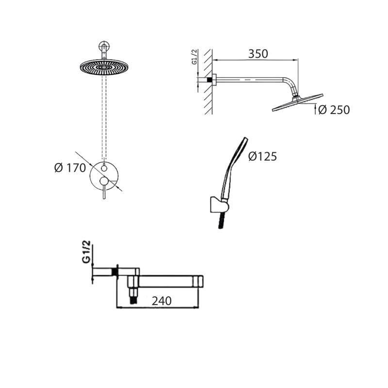 Длина кронштейна для верхнего душа, мм311