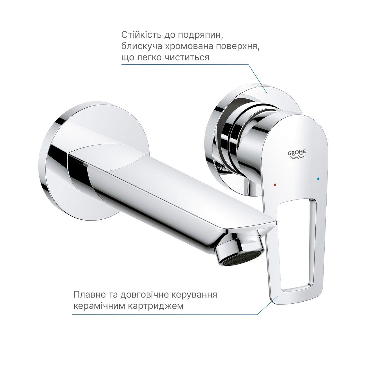 Смеситель скрытого монтажа для раковины Grohe BauLoop New 20289001 - идеальное решение для современной ванной комнаты. Устройство предназначено для скрытого монтажа и состоит из внешнего комплекта с изливом для окончательной сборки и внутренней части. В основе смесителя лежит керамический картридж GROHE Longlife диаметром 35 мм, который обеспечивает долговечность и надежность работы.