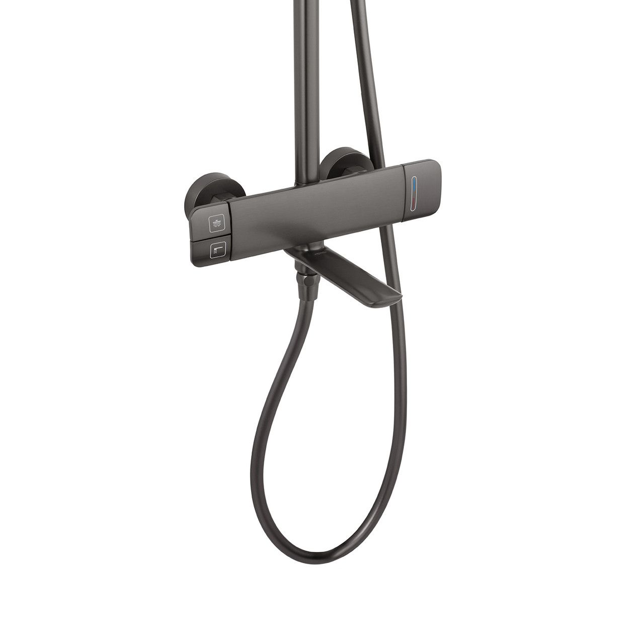 Система изготовлена из прочной латуни и ABS-пластика, что гарантирует долговечность и устойчивость к износу. Матовая поверхность в графитовом цвете придает изделию элегантный и современный вид, который гармонично впишется в любой интерьер.
