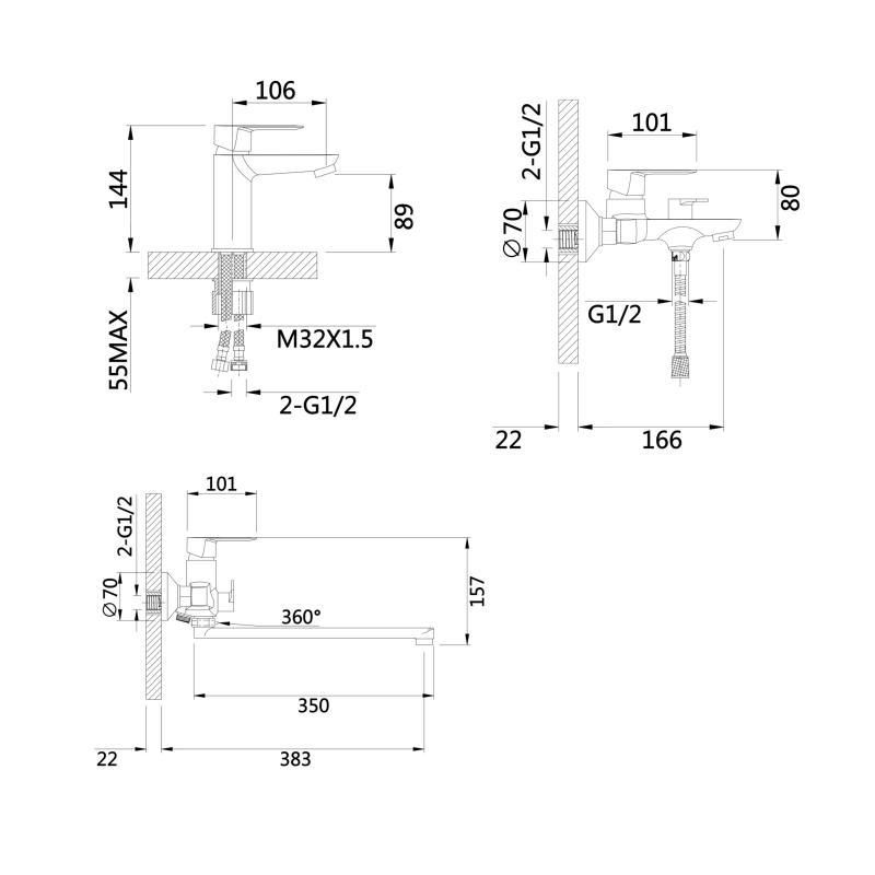 Набор смесителей для ванной 2 в 1 Mixxus SUS 006 + Mixxus SUS 001 A из нержавейки В наличии