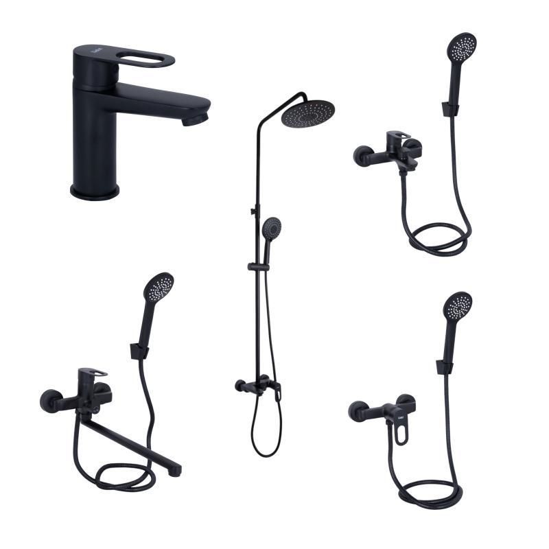 Комплект смесителей для ванной комнаты Lidz Latwa 001Black+Lidz Latwa 006Black+Lidz Latwa 005Black+Lidz Latwa