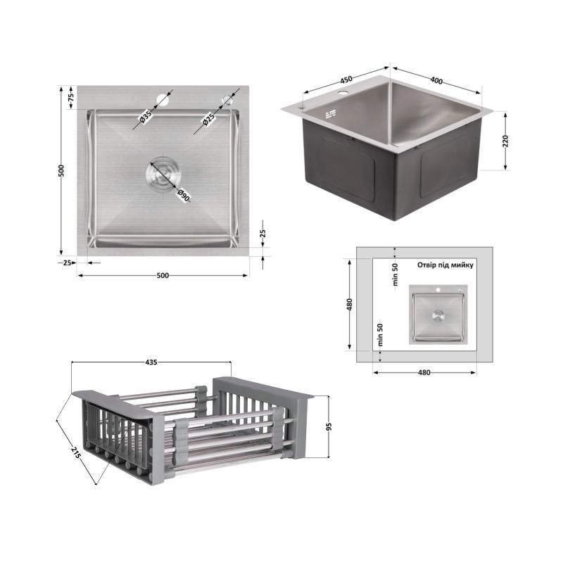 КомплектацияМойка (LDH5050BRU35375), корзина (LIDZK01G)